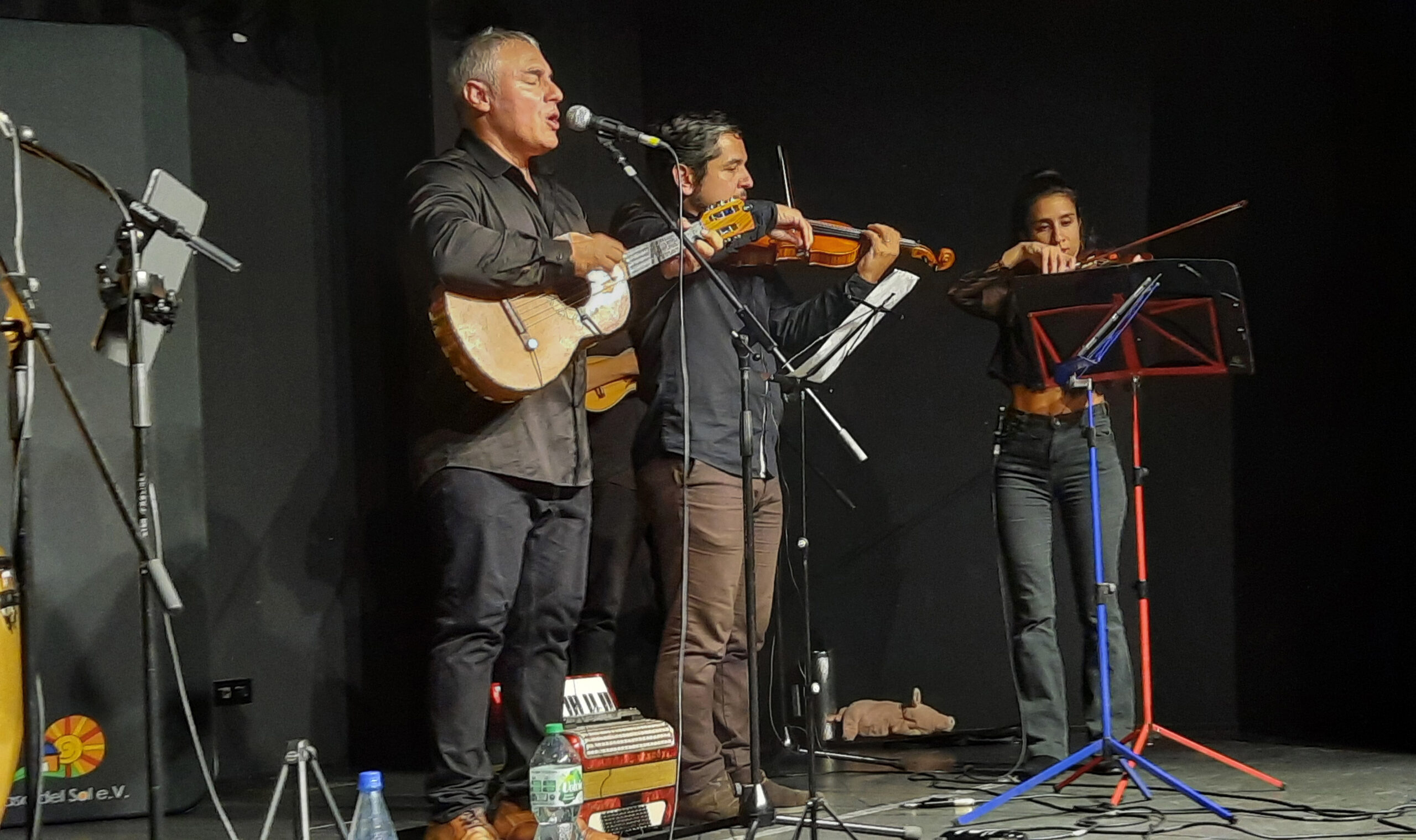 Die musikalische Reise begann mit Rodrigo Alfonso und Band, die das Publikum mit leidenschaftlicher Energie in die reiche Folklore Lateinamerikas entführten. Nach einer Pause mit intensiven Gesprächen betrat Imbaya die Bühne. Mit spektakulären andinen Instrumenten wie Zampoñas und Quenas nahmen sie das Publikum mit auf eine klangvolle Reise durch die Höhen der südamerikanischen Anden.